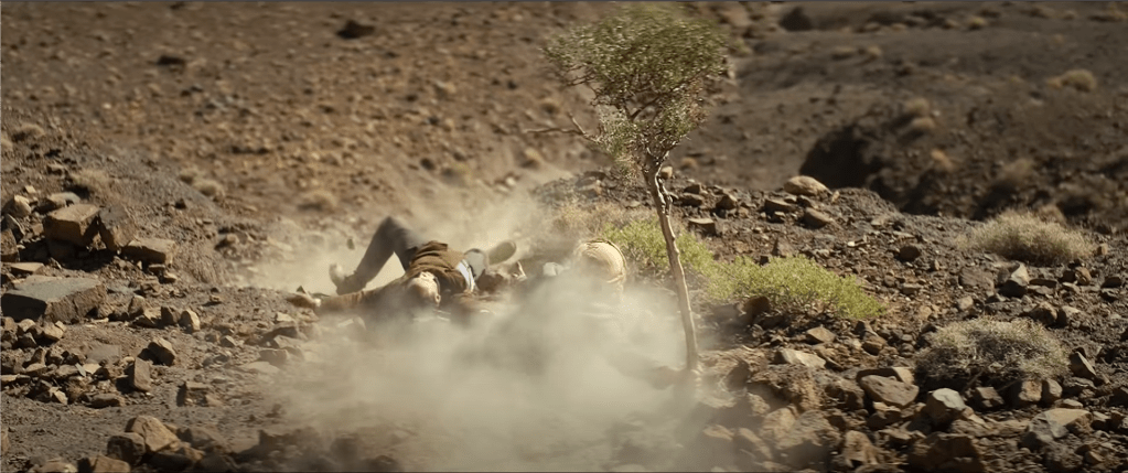 Der Lehrer beobachtete, wie die beiden Männer auf ihn zu kamen. Die beiden Männer kamen an, einer war auf dem Pferd und einer zu Fuß. Die beiden Männer kamen nur langsam voran und sie bemühten sich durch den Schnee zu kommen. Der Weg war sehr steil zur Schule. Der Lehrer sah das es sehr schwer für die beiden Männer war zu ihm zu gelangen. Einer der Männer kannte sich aus und konnte der Spur im Schnee folgen. Der Lehrer ging in die Schule zurück und in den kalten Klassenraum zurück. An der Tafel waren die vier Flüsse von Frankreich abgebildet. Der Schnee war Mitte Oktober nach acht Monaten Trockenheit gefallen. Das Problem war, das die Schüler nicht mehr zur Schule kommen konnten. Der Weg war zugeschneit. In der Nacht wurde der Schnee weniger. Der Lehrer bleibt nur in seinem Zimmer. Er ging nur raus um die Hühner zu füttern. Es kam der Lieferwagen aus Tadjid. Normalerweise braucht der Lieferwagen 40 Minuten, diesmal brauchte er 8 Stunden. Das Unglück der Dürre, betraf alle Menschen aus der Umgebung. Viele Menschen starben, der Lehrer bekam das aber nicht mit und fühlte sich wie ein Mönch. Vielleicht würden einer der Väter oder der Brüder sie an der Schule mit Getreide versorgen. Schiffe mit Weizen kamen jetzt aus Frankreich und das schlimmste war nun überstanden. Es war eine Katastrophe, Menschen und Scharfe starben und teilweise merkte es niemand. Der Lehrer war mit dem wenigen was er hatte, nun sehr zufrieden. Der Lehrer schaute aus dem Fenster, er erkannt einen Mann den Reiter Balducci. Balducci hielt den Araber an einem Seil fest.